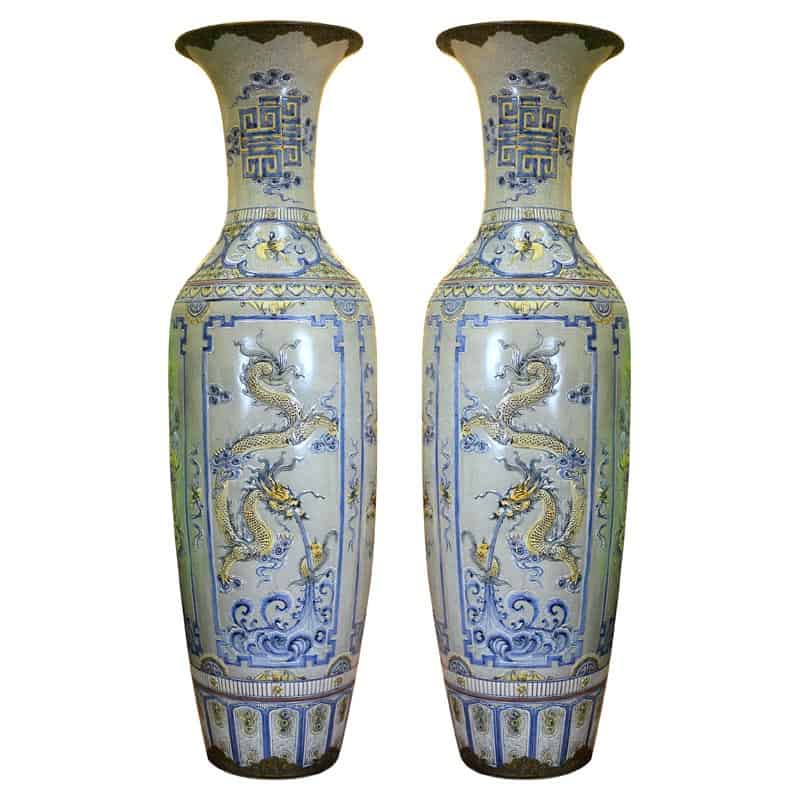 Lục bình tứ linh men rạn bọc đồng 1M8 / gốm sứ Đông Triều
